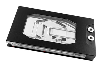 With 100 x 0.15mm fins, we are setting the standard for water-cooled graphics card coolers with our current ultra-performance baseplate. Compared to the PRO version, the ULTRA version has a larger cooling surface, which ensures better temperatures. The Ultra-Performance base plate is currently considered the reference in the water cooling sector.