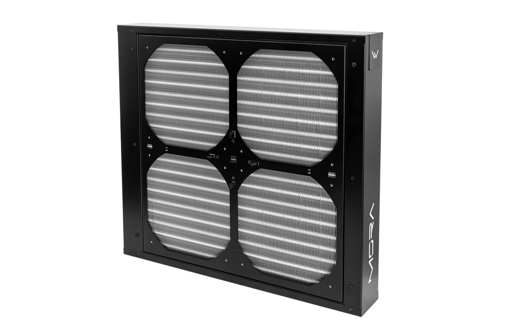 With an additional fan frame, the MO-RA IV can be fitted with fans on both sides. Like the fan grill, the newly designed frames rely on our custom-developed quick-mount system. This means that the fan frame is very simple to install. We have also taken the cabling into account and integrated a fan splitter for the fans at the rear.