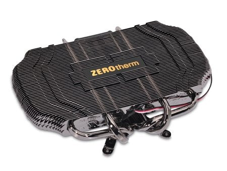 The ZEROtherm COOLMAXX 2000 VGA Cooler provides advanced cooling performance for Video and Graphics cards as well as Memory and power components via innovative Base, Fan, and Fin (BFF) design. Designed specifically for Over-clockers and Noise-haters, the COOLMAXX 2000 VGA Cooler has adaptable manual fan-speed controller which allows you to adjust your fan speed between 1,00-2,700 rpms at +/-10% and noise levels between 20-33dBA. It has 4 Pure Copper Heat Pipes which whisk heat away from your valuable performance components, powerful fan and massive aluminum heat sink to keep the temperature cool within your high-end computing rig. The ZEROtherm COOLMAXX 2000 VGA Cooler is compatible with the latest ATI and NVIDIA graphics cards, such as the ATI Radeon HD 4850/4870 series and NVIDIA GeForce 9800 Series models.